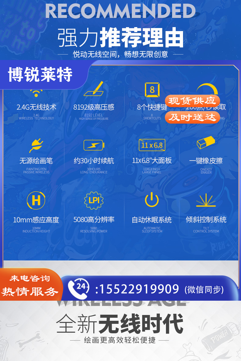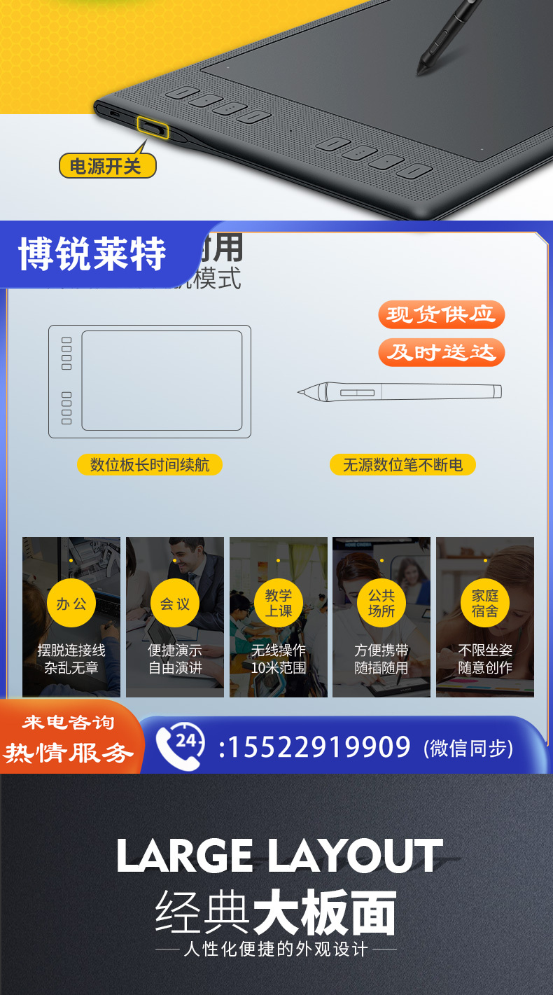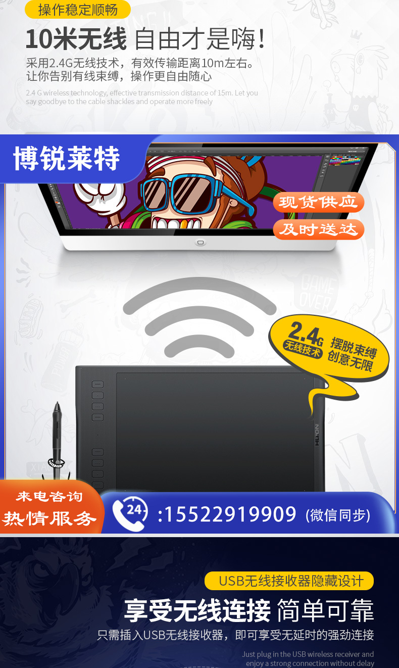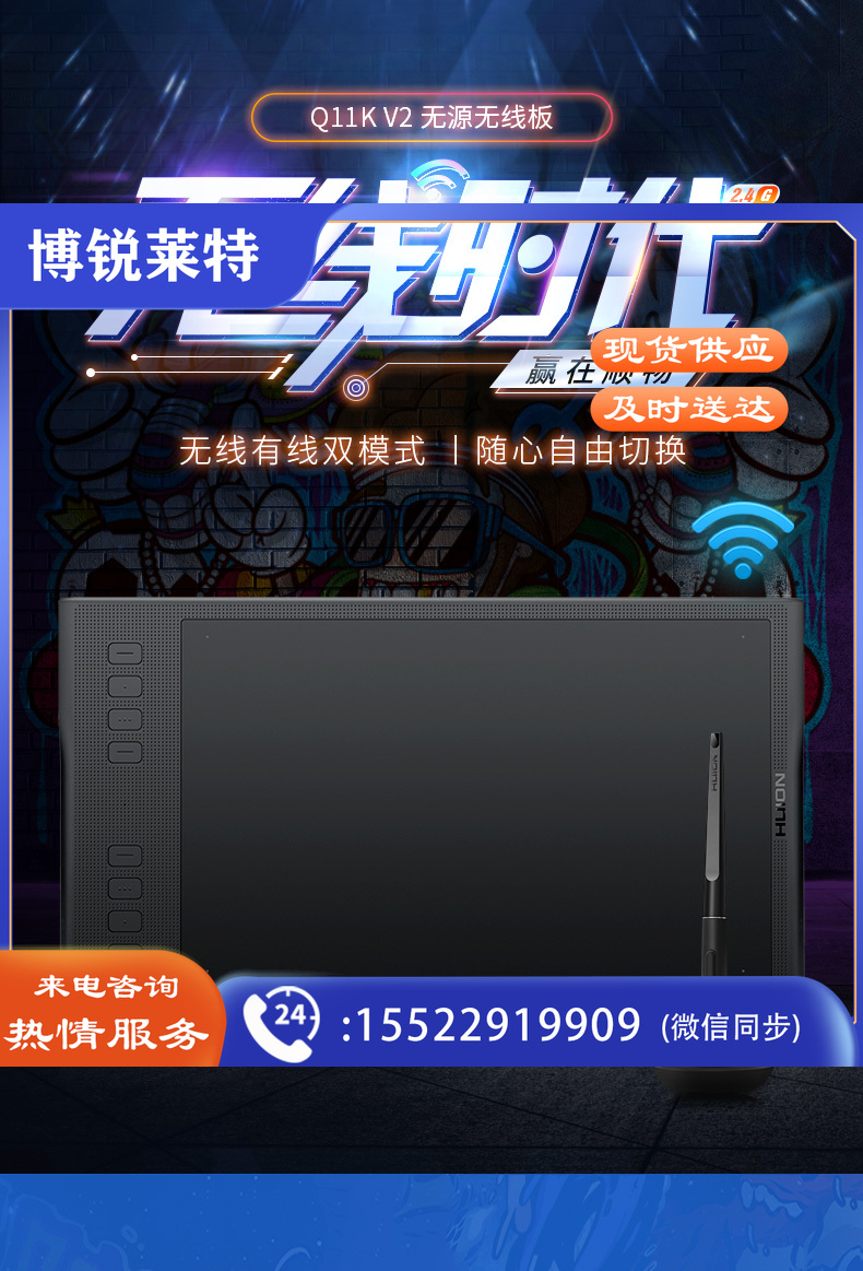 绘王Q11K V2 无线手绘板绘图板 电子绘画板手写板电脑画板 数位板 无线大板 8大快捷键 无源升级